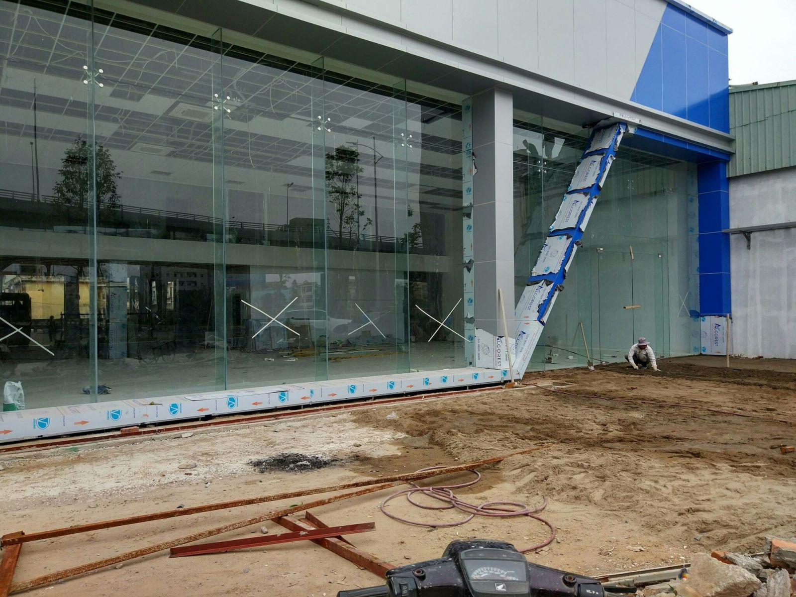 Công trình Showroom ôtô Chevrolet Long Biên tiếp tục thi công các hạng mục như: Trần thạch cao, hệ thống internet, mạng lưới điện .....