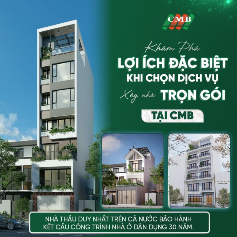 Nếu bạn đang tìm kiếm một đơn vị thi công đáng tin cậy, hãy cân nhắc CMB xây dựng – đơn vị chuyên cung cấp dịch vụ nhà đẹp trọn gói CMB, đồng hành từ bản vẽ đầu tiên đến khi giao chìa khóa với chi phí minh bạch, chất lượng đảm bảo.